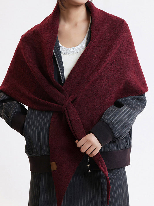Yün Karışımlı Düz Örgü Üçgen Şal