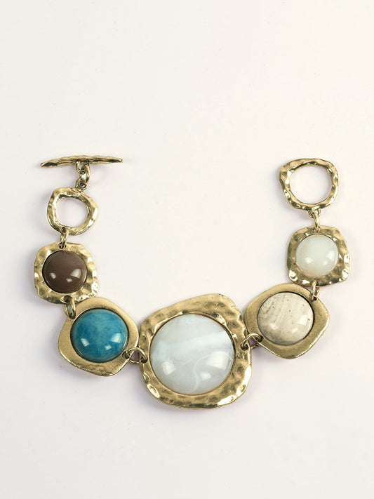 Gösterişli Çok Taşlı Altın Tonlu Bilezik