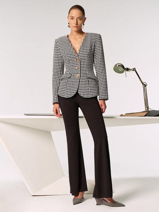 Contrast Pleated Panel Pinstriped Belted Blazer Dress