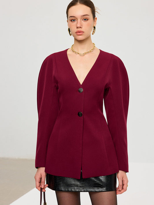 Tek Düğmeli Dik Yaka Uzun Kollu Blazer Ceket