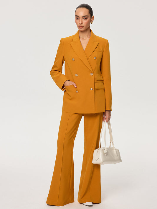 Kare Yaka Düğmeli Blazer Etekli Takım