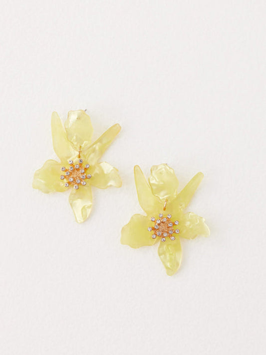 Muhteşem Çiçek Küpeleri Işıldayan Rhinestone'larla Süslenmiş