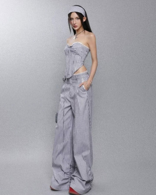 Liniria Çizgili Büstiyer & Pantolon Takım