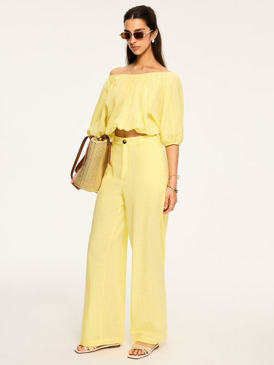 Süslemeli Yüksek Bel Bol Paça Pantolon