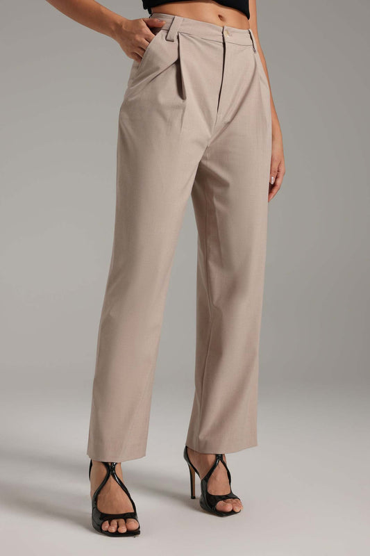Theodora Yüksek Bel Düz Kesim Geniş Paça Pantolon