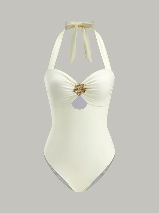 Metal Boncuklu Zincir Detaylı Bağlamalı Kesik Tek Parça Mayo