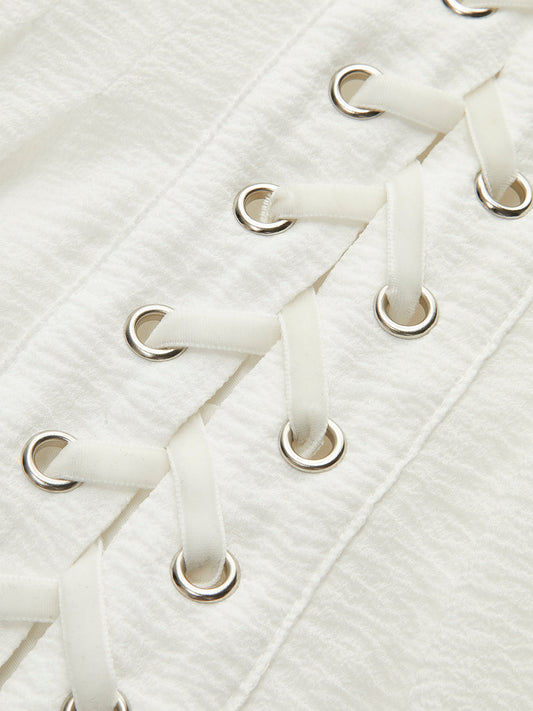 Önü Bağcıklı Yarı Şeffaf Elbise
