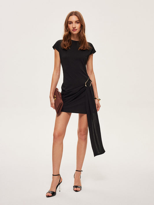 Metal Detaylı Bel Büzgülü Drapeli Elbise