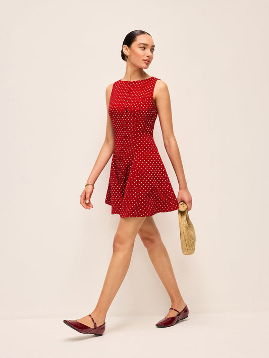 Puantiye Desenli Kolsuz Sırt Bağlamalı Elbise