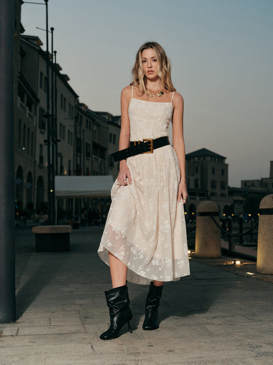Kolsuz Transparan Panelli Kemersiz Elbise