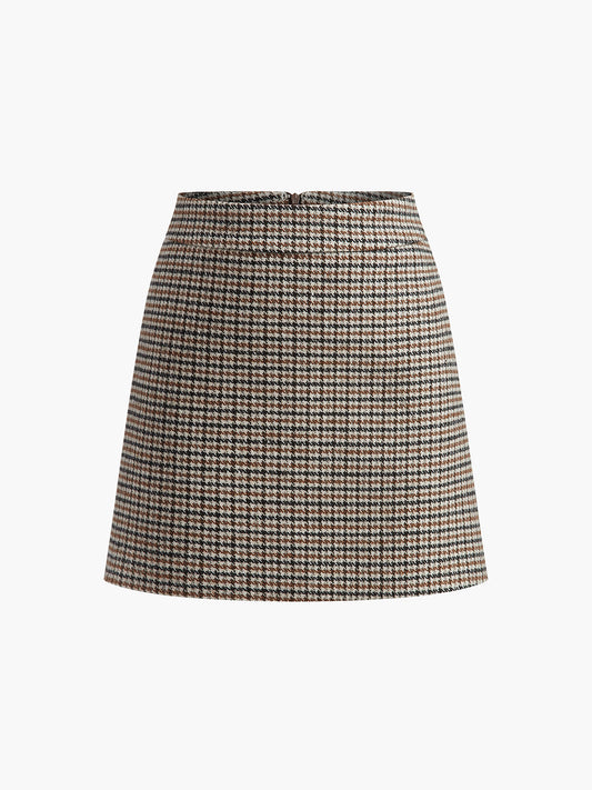 Kazayağı Desenli Düğmeli Kısa Ceket