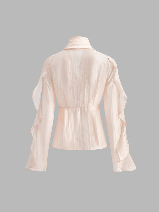 Yarı Şeffaf Şifon V Yaka Büzgülü Bluz