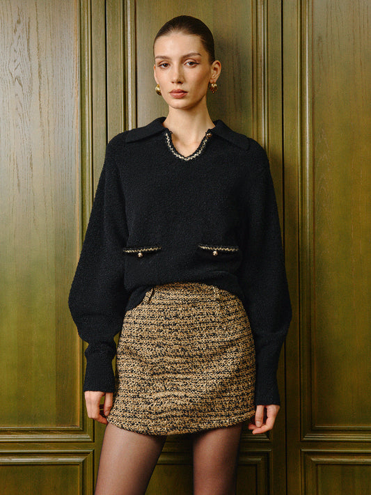 Yün Karışımlı Kontrast Biye Ribana Triko Bluz