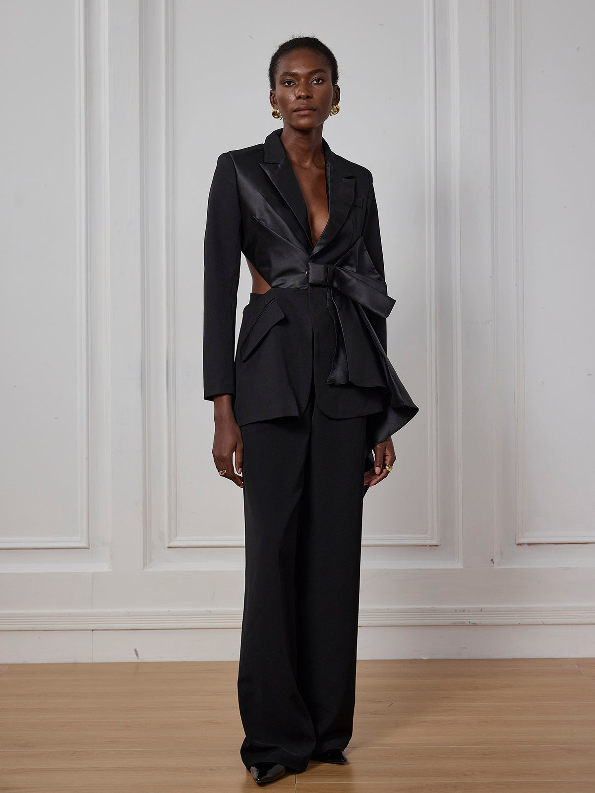 İncelten dar kesim (bodycon) yapısıyla bu blazer, her kombine feminen bir dokunuş katan benzersiz dekolteli fiyonk detayıyla öne çıkar. Hem profesyonel hem de resmi davetler için mükemmel olan bu blazer, zahmetsizce şık ve kusursuz bir görünüm garanti eder.