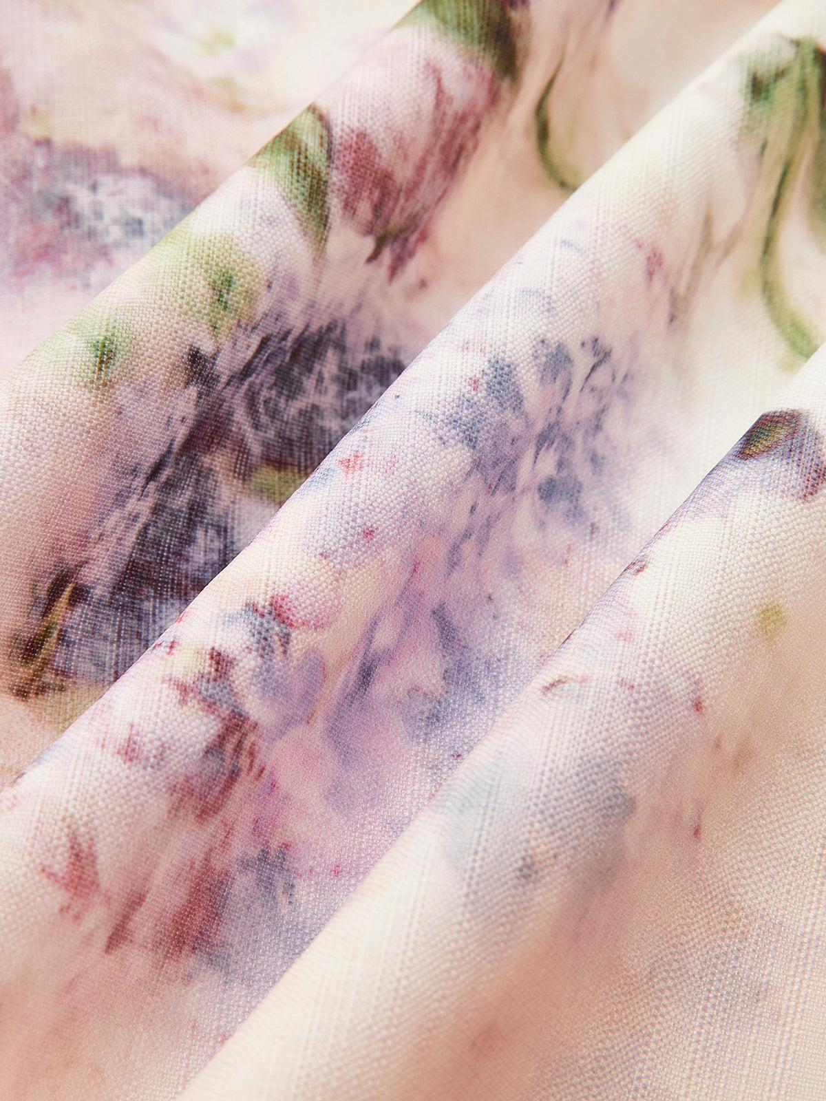 Kuşaklı Balon Kollu Çiçek Desenli Elbise