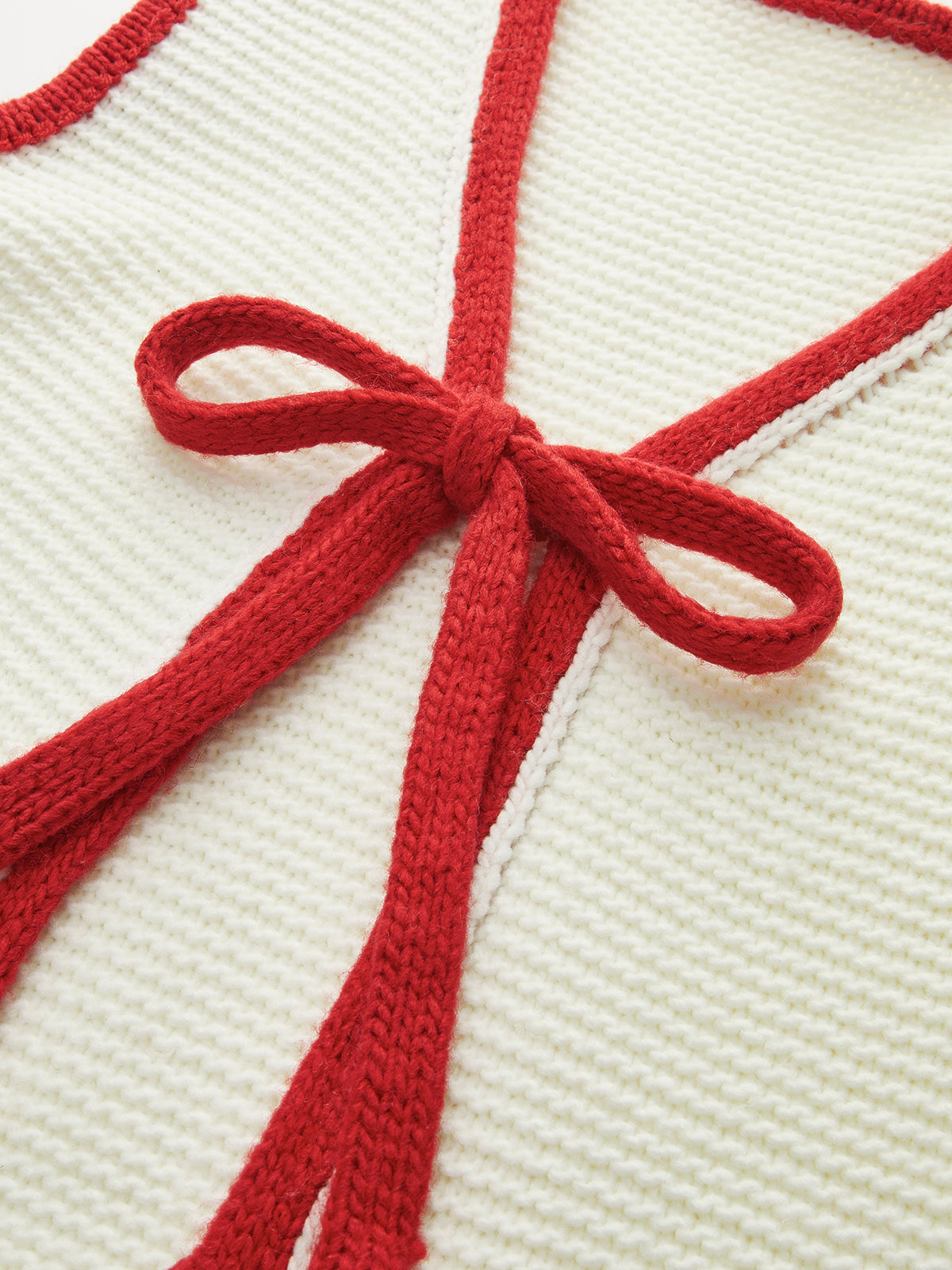 Renk Bloklu Bağcıklı Triko Yelek