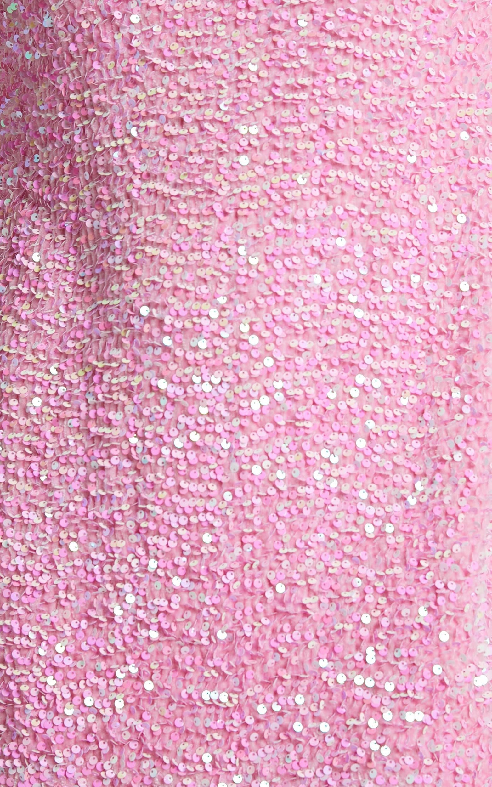 - Tasarım: Kadife, pullu detaylı, arkası V yakalı ve sırtı açık kısa kollu elbise