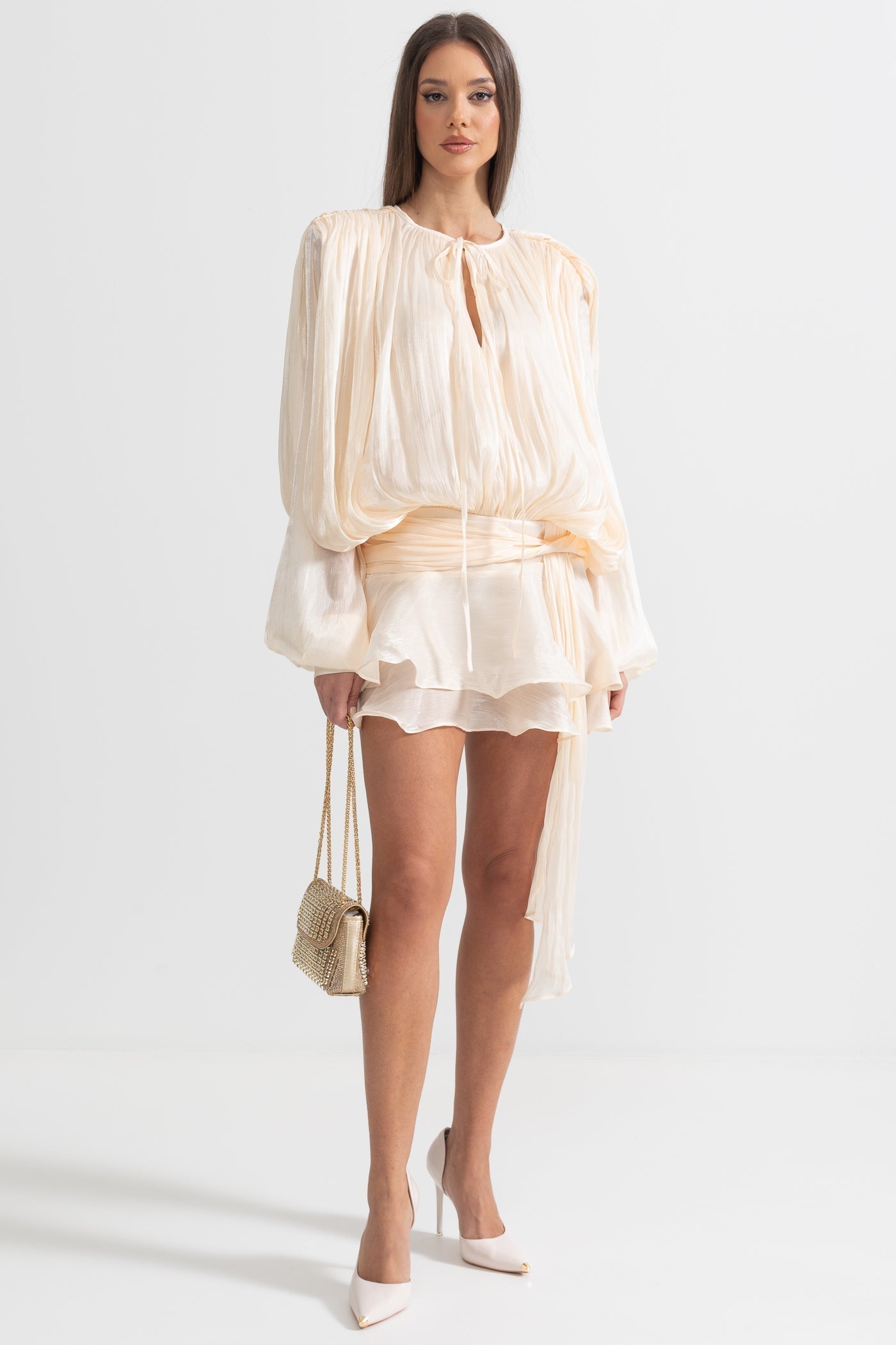 Seraphina Drapeli Fırfır Detaylı Mini Elbise