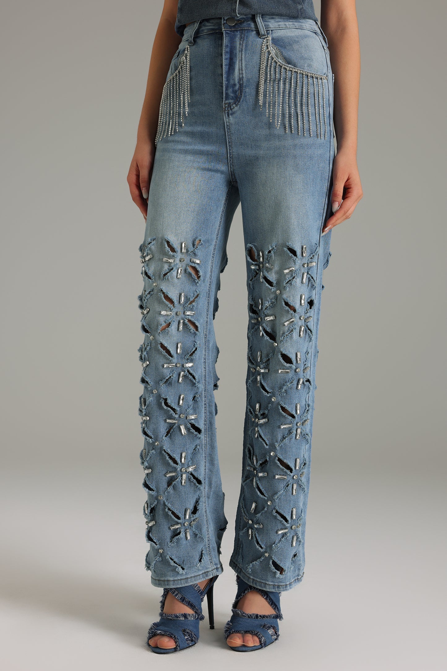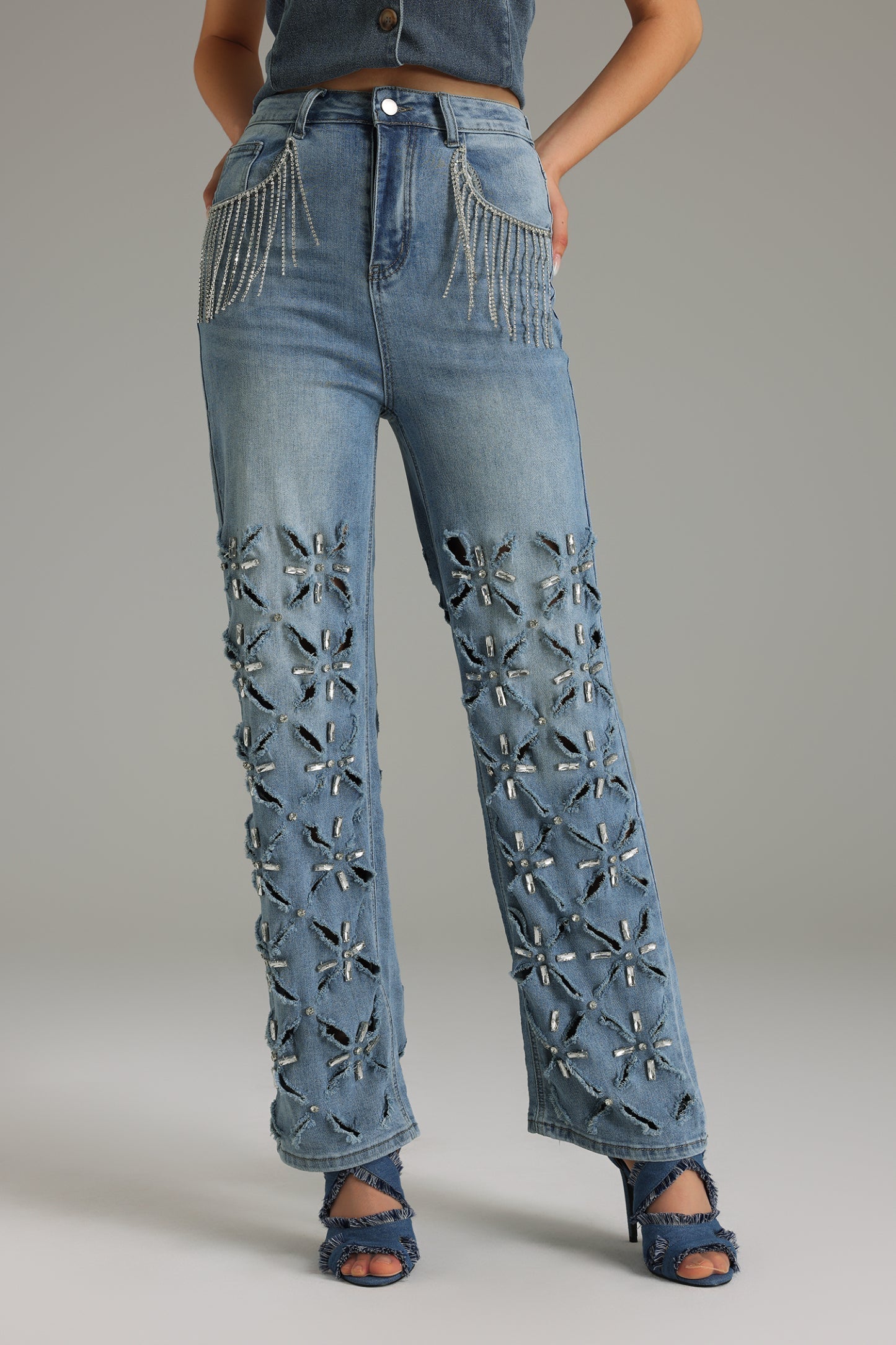 Janetta, özenle tasarlanmış taş detayları ve püsküllerle süslenen bu kot, gardırobunuzdaki en çarpıcı parçalardan biri olmaya aday. Ürün, polyesterden üretilmiş olup esnek yapısıyla gün boyu rahatlık sunar.