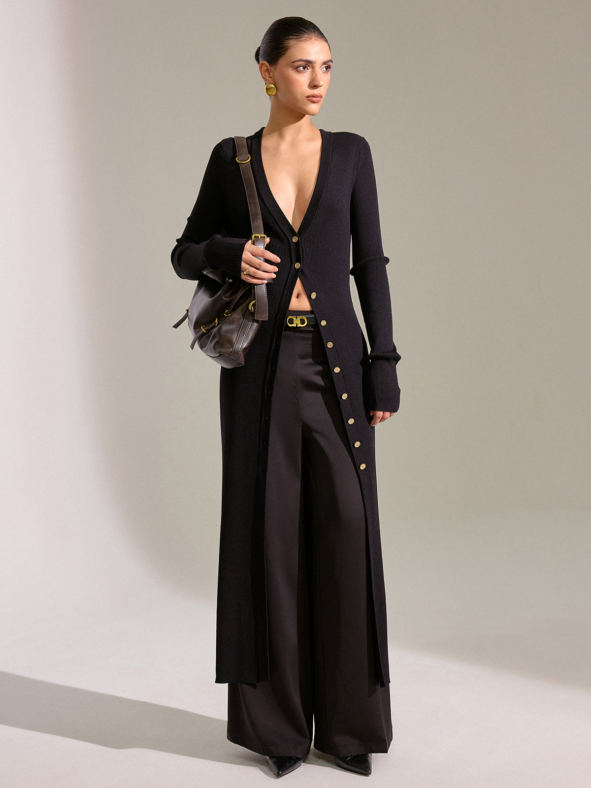 Metal Düğmeli Uzun Triko Hırka Elbise