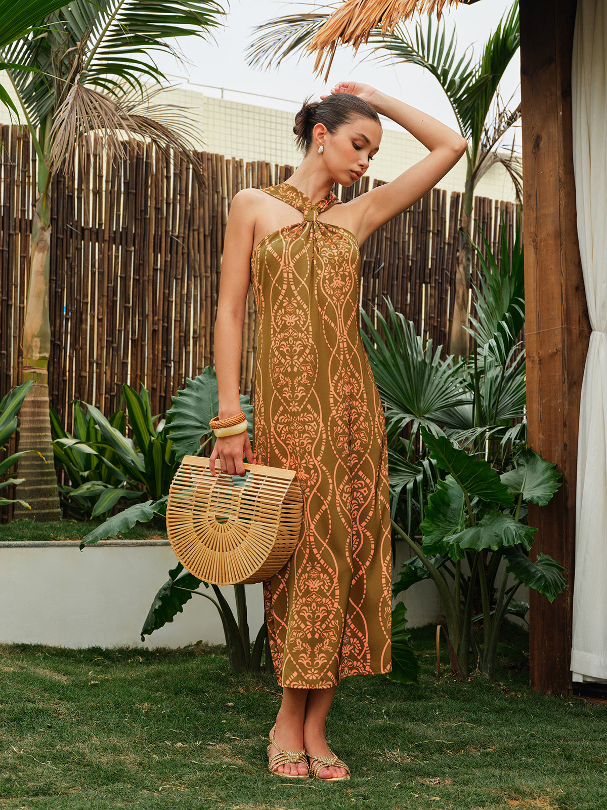 Tasarım: Halter (boyundan bağlamalı), yırtmaç detaylı