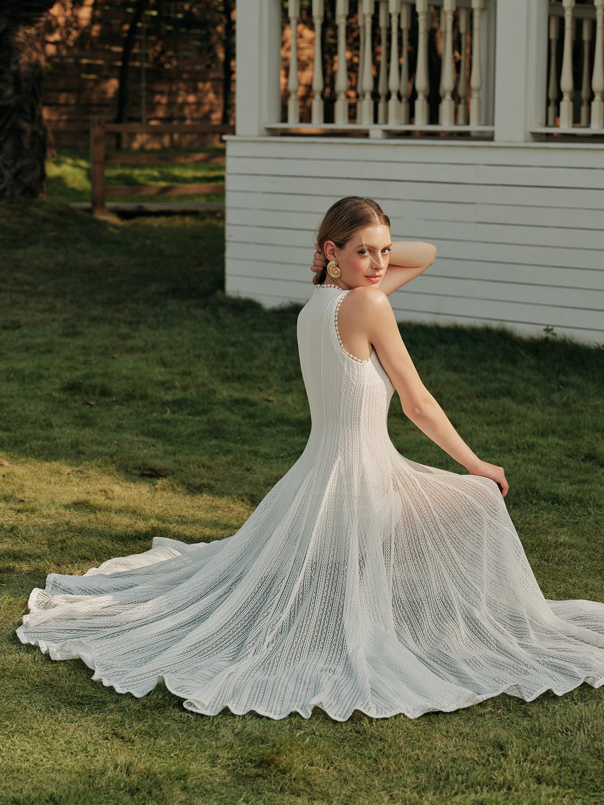 Yarı Şeffaf Dantel Kolsuz Elbise